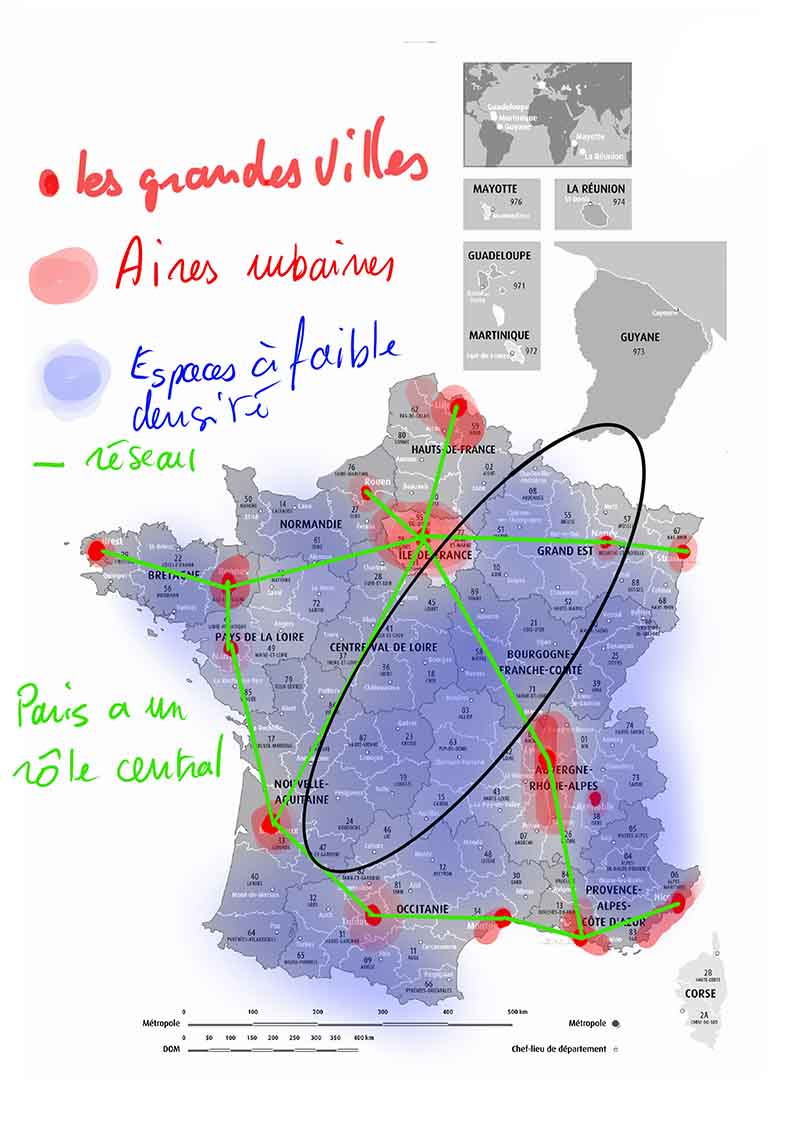 Les métropoles : Ce sont les grandes villes comme Paris, Lyon ou